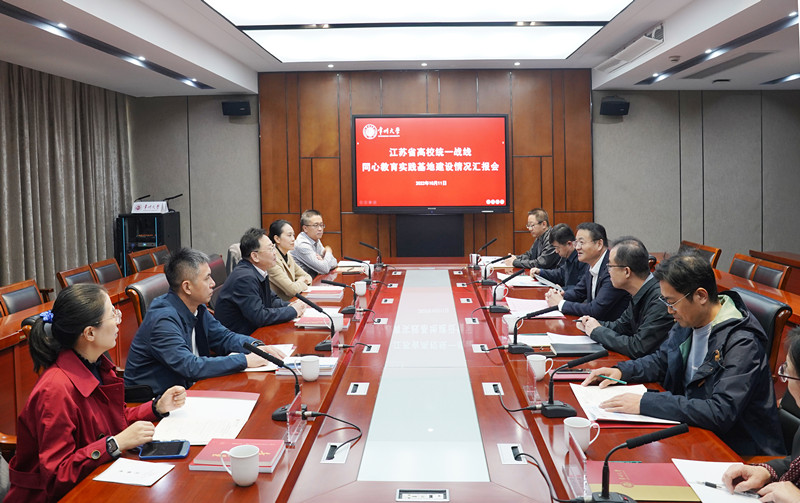 10月11日下午,江苏省高校统一战线同心教育实践基地专家组来我校实地察看同心教育实践基地创建情况。实地察看专家组由省委教育工委统群处副处长郝峰,南京信息工程大学党委常委、统战部部长陈涛,南京工业大学党委统战部常务副部长周辉,南京理工大学党委组织部、统战部副部长丁荣伟,南京审计大学党委统战部副部长倪桓组成。校党委书记陈群出席基地建设情况汇报会,党委统战部、民主党派和统战团体负责人代表参加汇报会,汇报会由校党委组织部、统战部部长周刚主持。