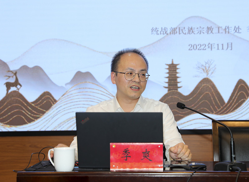 11月18日下午,学校在文正楼第四会议室举办高校民族宗教工作培训会,邀请常州市委统战部民族宗教工作处处长季爽作题为“高校民族宗教工作怎么看、怎么办、怎么干”的专题报告。相关二级党组织书记、副书记以及辅导员代表参加报告会。报告会由组织部统战部副部长戴晔主持。