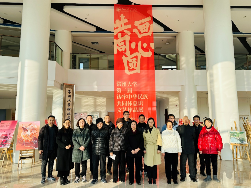 会前,朱静雅一行参观了由常州大学党委统战部主办,常州大学美术与设计学院党委承办的“礼赞党的二十大 共画最大同心圆” ——常州大学第二届铸牢中华民族共同体意识主题文艺作品展。