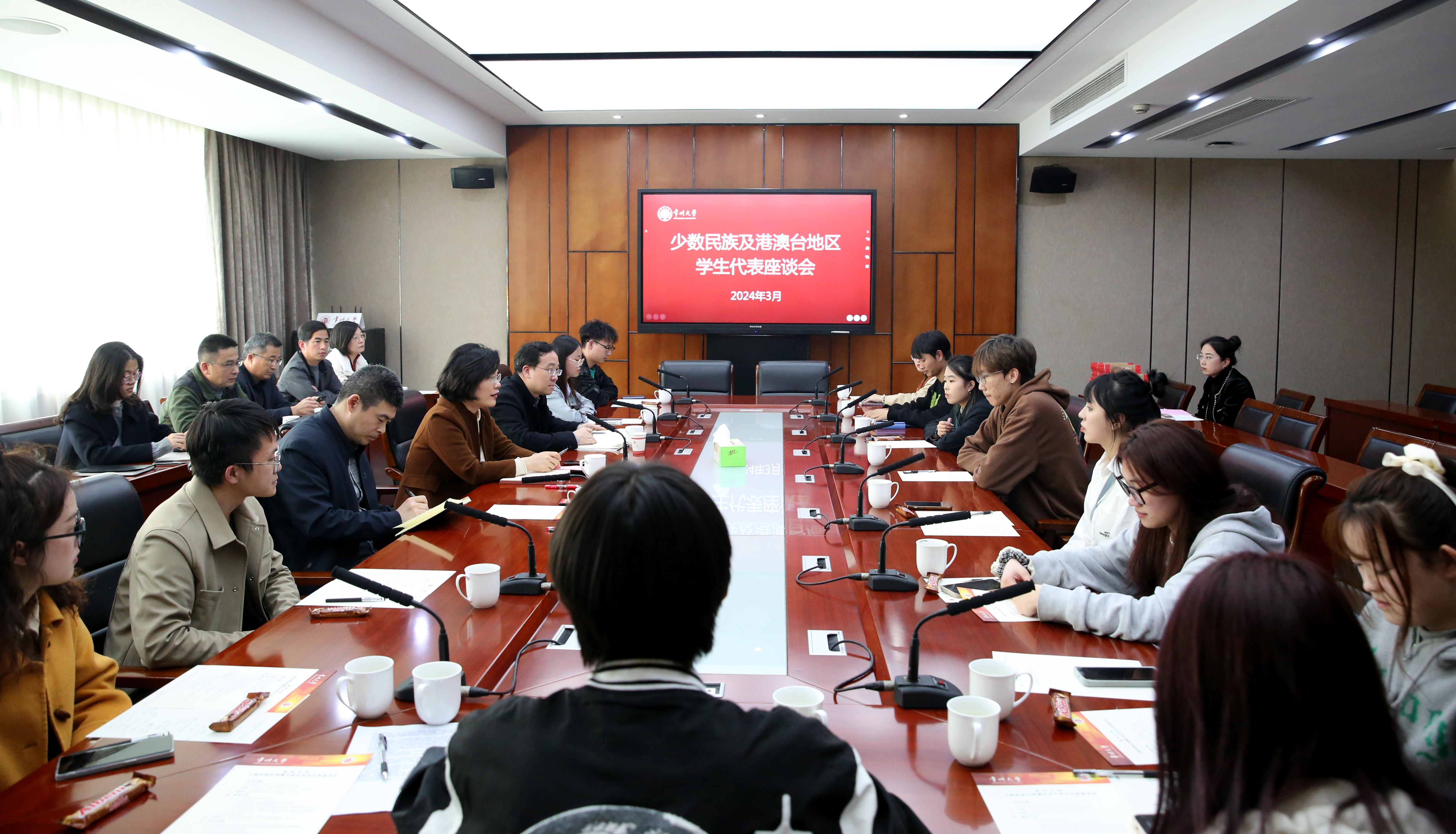 3月22日下午,学校在科教城校区文正楼第二会议室召开以“石榴花开成长路 共叙融融中华情”为主题的少数民族及港澳台地区学生代表座谈会。校党委副书记黄海燕出席会议并讲话,全校少数民族及港澳台地区学生代表参加会议。党委统战部、港澳台事务办公室、研工部、学工部、后勤服务中心等部门有关同志列席会议。会议由党委统战部副部长白泽朴主持。