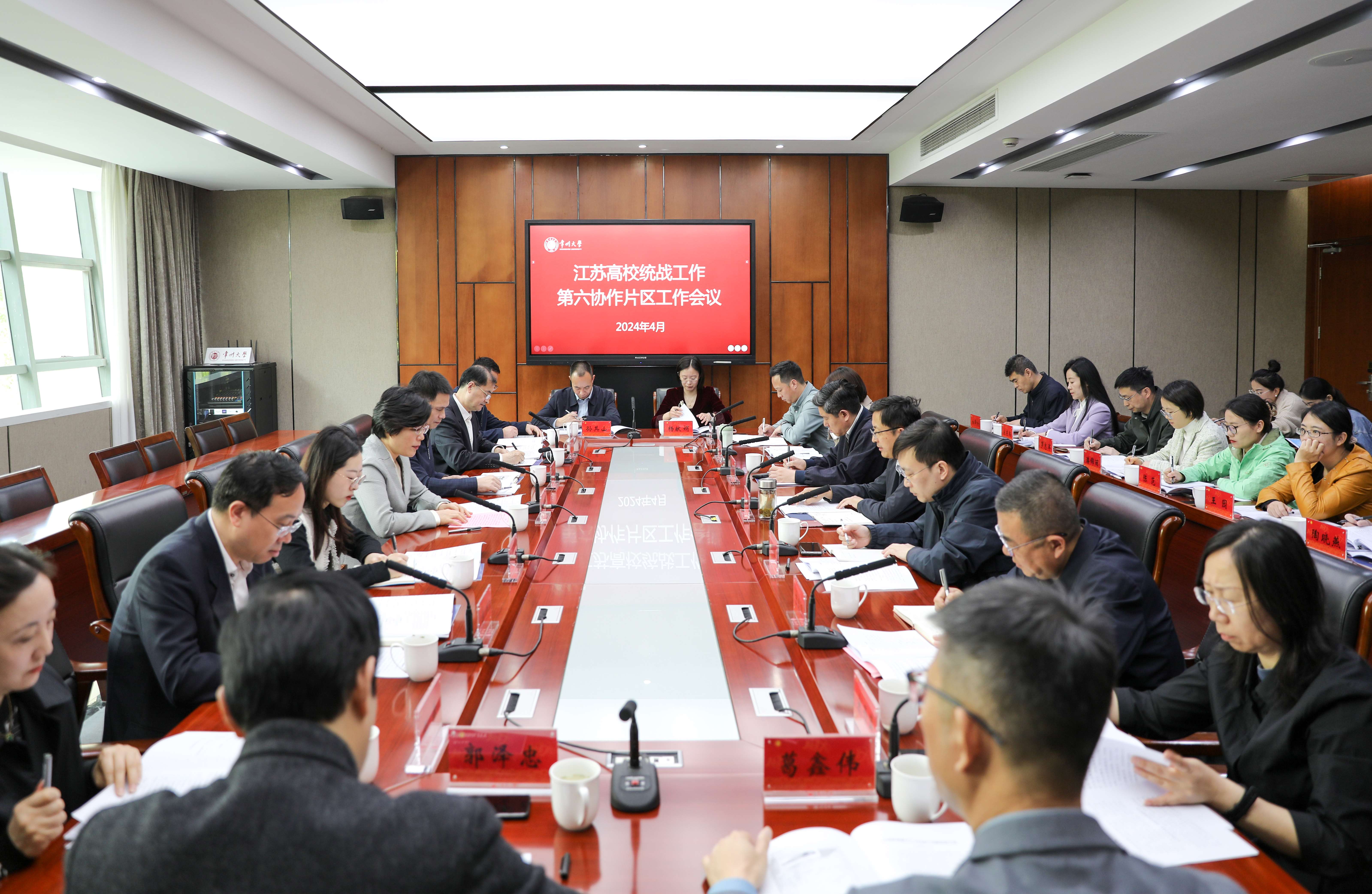 4月19日,2024年上半年江苏高校统战工作第六协作片区工作会议在我校召开。南京农业大学、苏州大学、南京邮电大学等24所高校统战部门负责人参加会议。省委统战部五处四级调研员郝晓华、市委统战部知新处一级主任科员钱昕玥出席会议,校党委副书记黄海燕到会并致辞。苏州大学党委常委、统战部部长黄志斌主持会议。