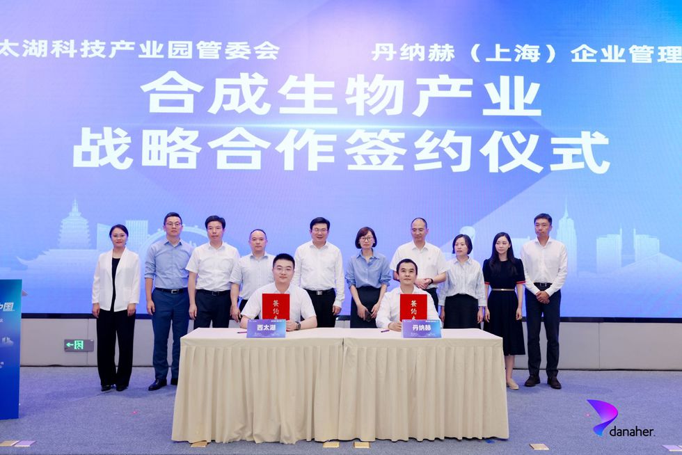 会上,常州西太湖科产业园管理委员会与丹纳赫(上海)企业管理有限公司签订战略合作协议。双方将围绕合成生物产业,共建公共技术服务平台,并在合成生物产业项目孵化与引进、装备制造、设备支持、标准制定、外脑咨询、商业培训等方面展开全方位合作。