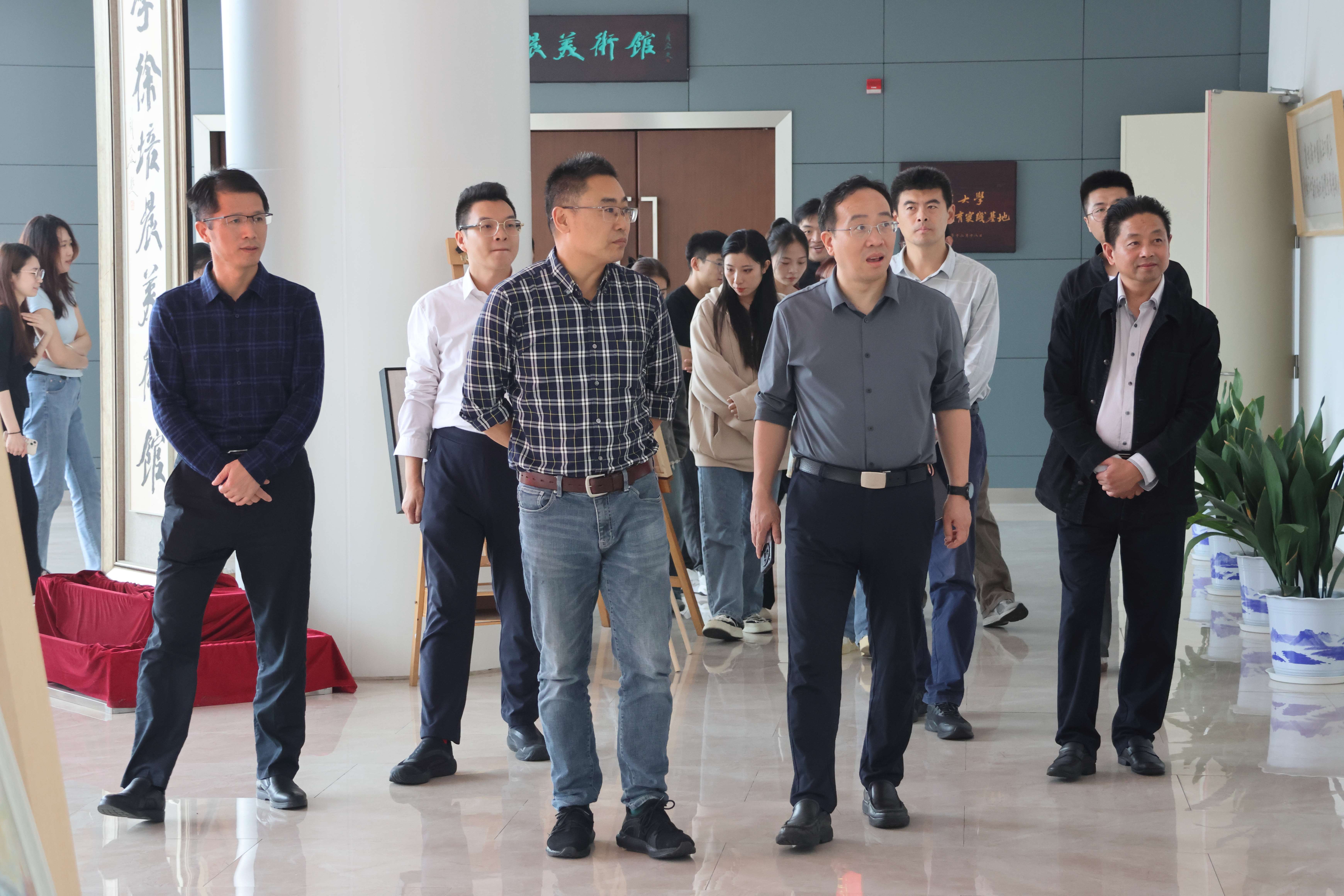 10月17日下午,中国标准草书学社专职副社长纪松专程来校调研“庆祝新中国成立75周年暨铸牢中华民族共同体意识艺术展”布展工作。校党委常委、党委组织部部长、统战部部长秦义,美术与艺术设计学院党委书记吴荷平、美术与艺术设计学院副院长(主持工作)贾韬、常州市书法家协会主席陈清陪同调研。
