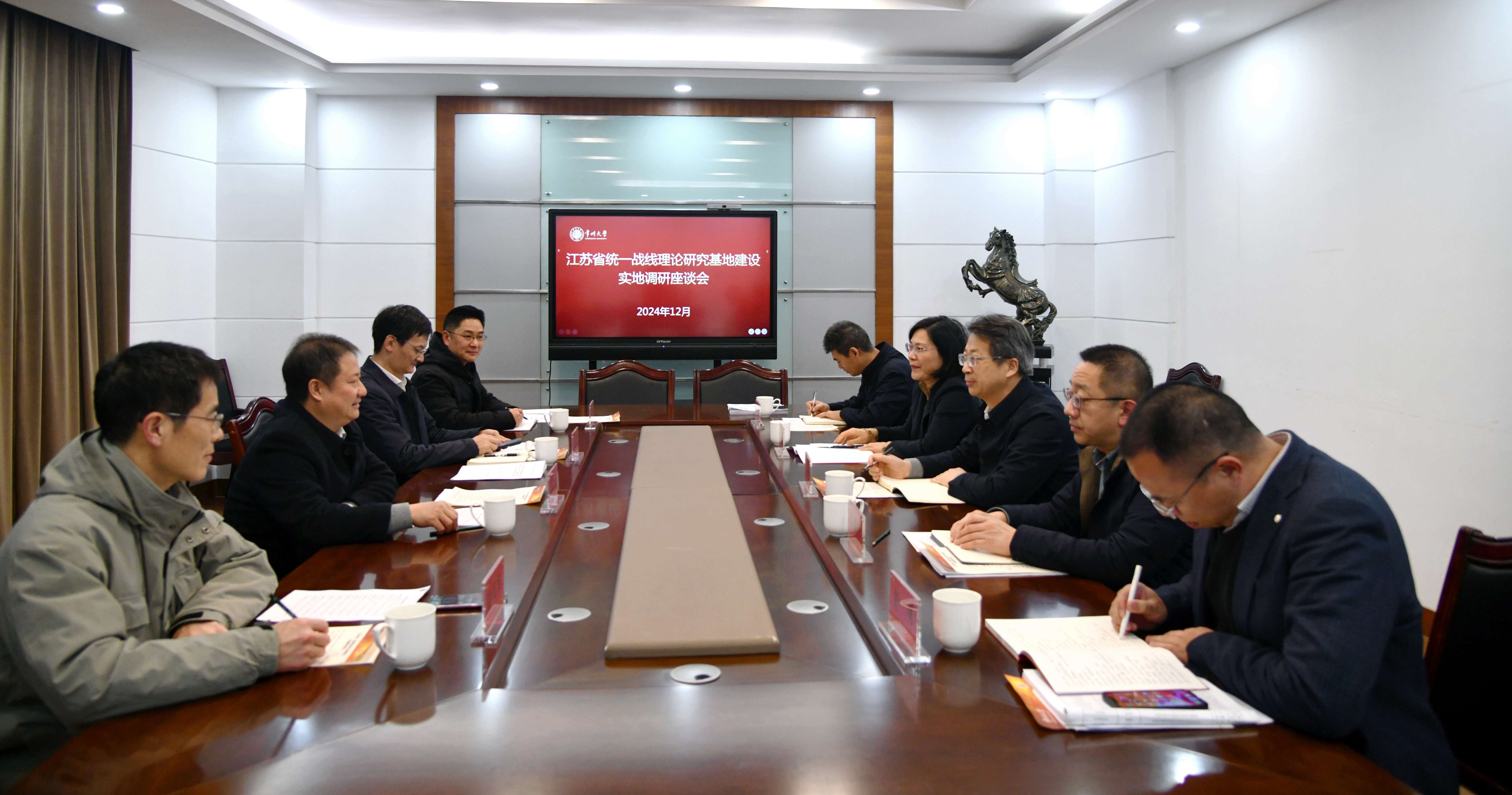 12月26日下午,省委统战部副部长徐东海等一行3人来校调研江苏省统一战线理论研究基地建设情况。常州大学省统战理论研究基地主任、党委书记徐守坤,副书记黄海燕,基地执行主任兼首席专家姜国刚,基地副主任白泽朴、彭伟参加调研座谈。