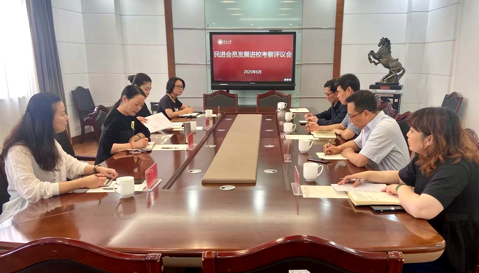 6月11日上午,民进会员发展进校考察评议会在文正楼第三会议室举行。民进常州市委会副主委兼秘书长戴晓娥、组宣处副处长姚进、办公室主任沈丹,常州大学机关党委书记、统战部副部长白泽朴,考察对象所在学院领导出席会议。会议由民进常州大学支部主委邵莺主持。