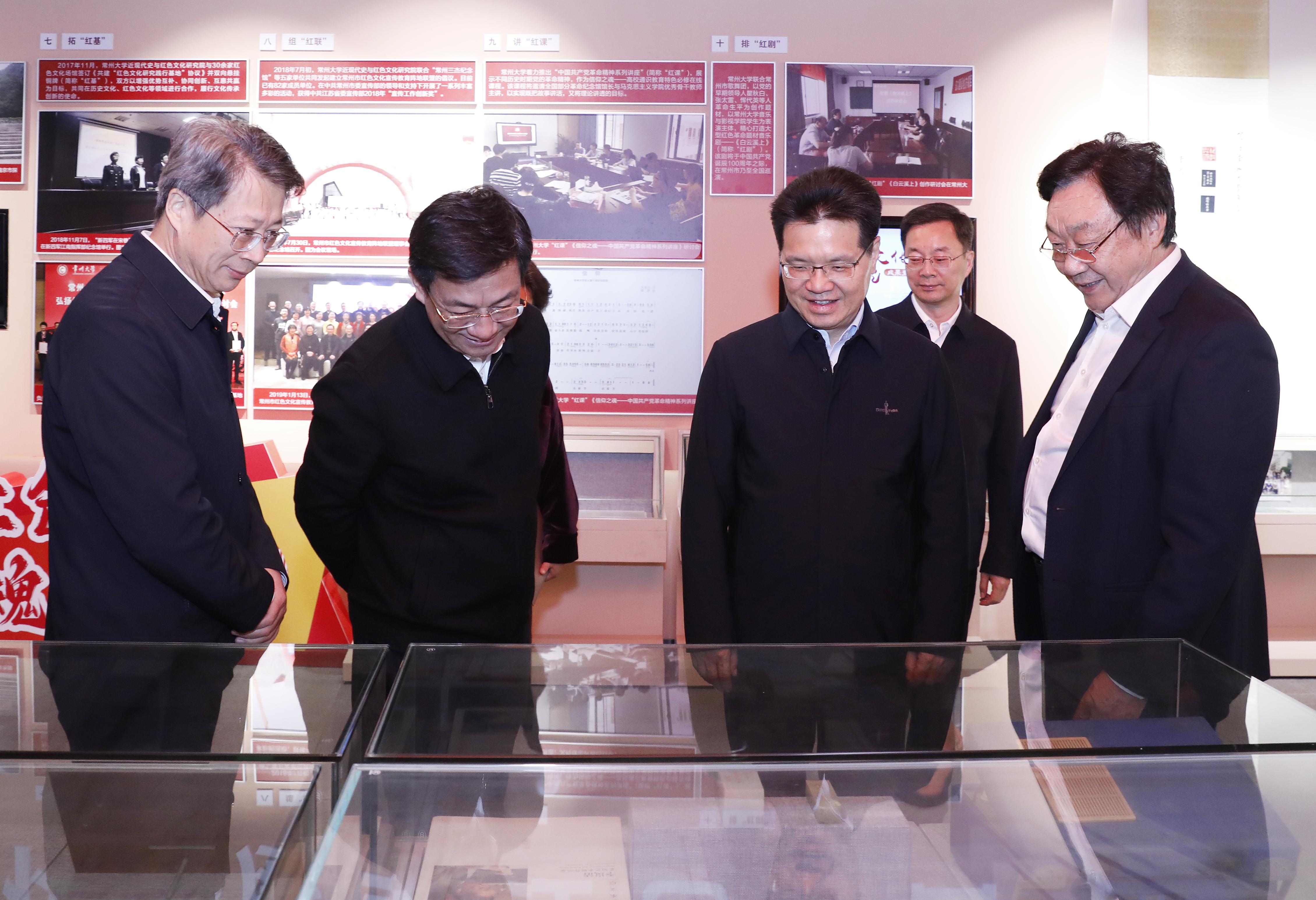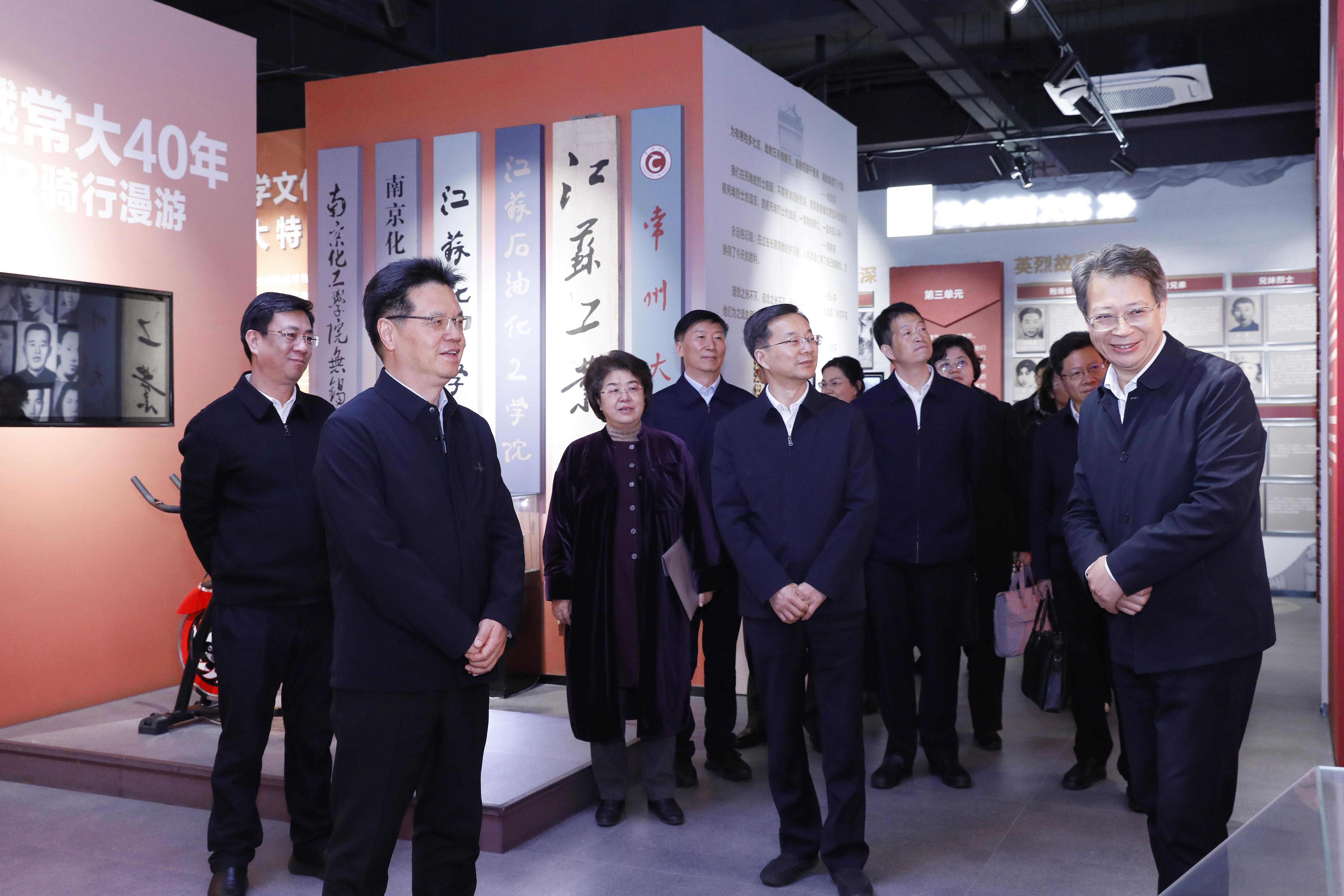 常州大学是以城市命名、扎根本土的特色鲜明的高水平地方领军型大学,在产教融合、校企合作、红色基因传承等方面成效显著。会前,常州市委理论学习中心组全体成员集体走进校园,参观了常州大学红色文化主题教育馆、观摩了精品思政课,现场学习调研了学校思想政治工作阵地,以更强的现实针对性推动本次学习不断深入。