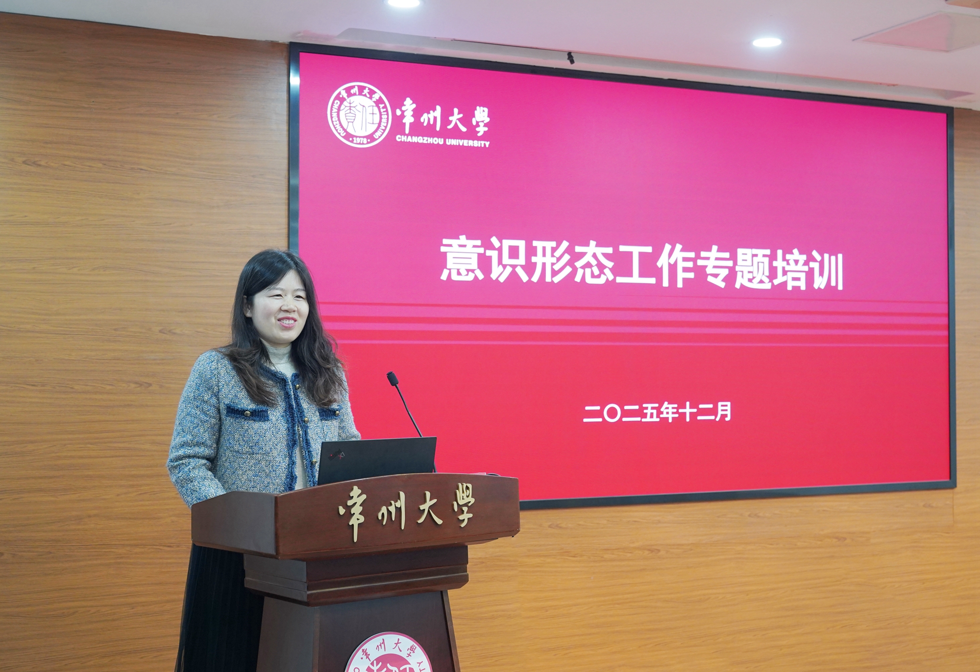 12月20日,学校在科教城校区文正楼第四会议室开展意识形态工作专题培训。常州市委网信办舆情监测处副处长王兰应邀授课。学校舆情信息员、网络评论员参加培训活动。党委宣传部副部长郁涛主持培训活动。