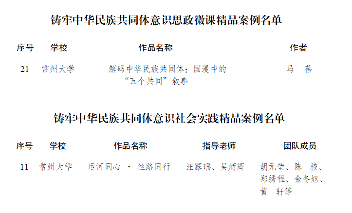 近日,由省民宗委、省委宣传部、省委统战部、省教育厅共同举办的全省第三届“铸牢中华民族共同体意识·高校在行动”系列活动公布获奖结果,常州大学喜获佳绩。